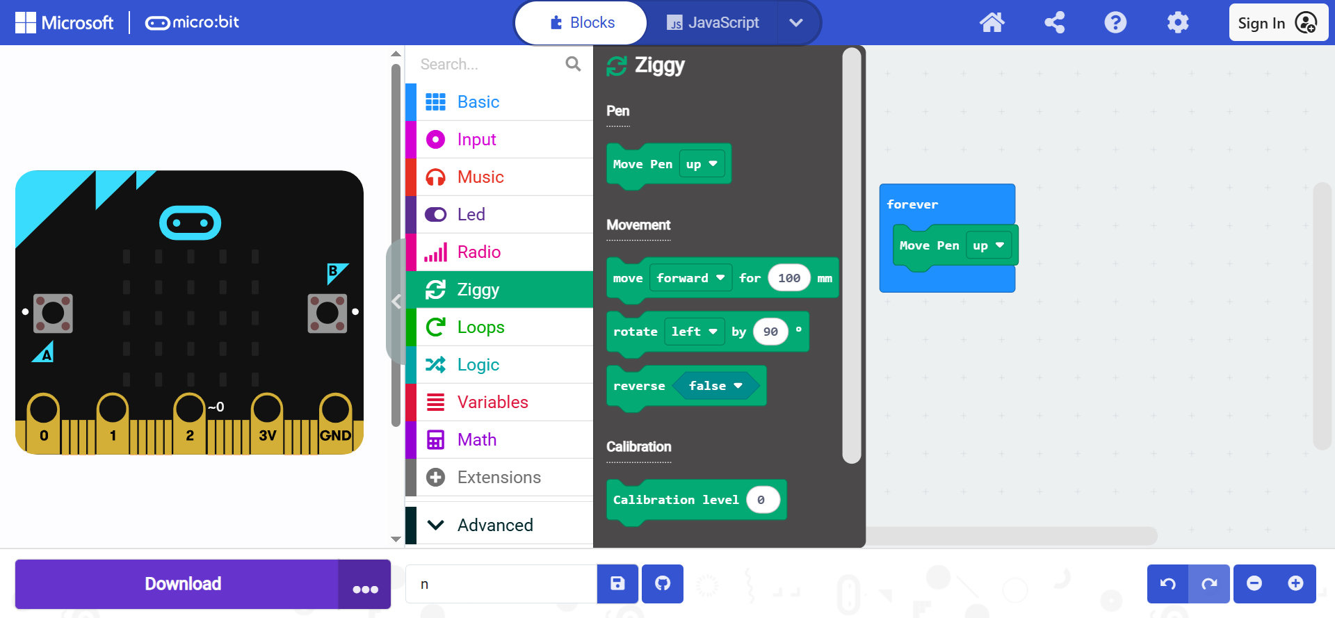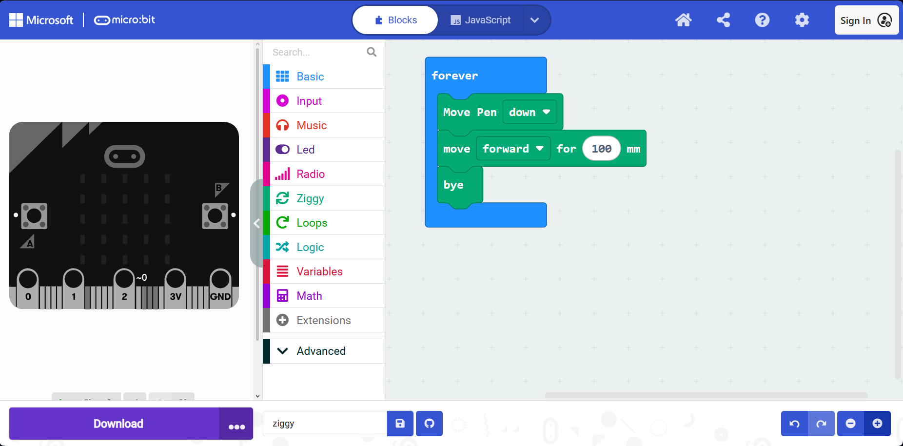 Tip: Use Pen Up when you want Ziggy to move or reposition without leaving marks.