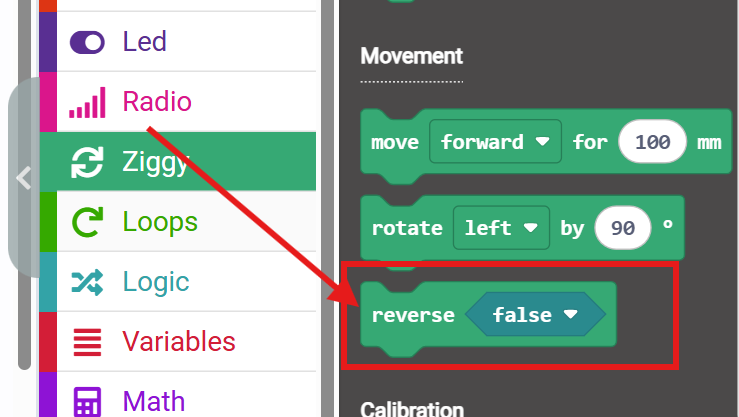 Change the distance in mm to control how far Ziggy moves