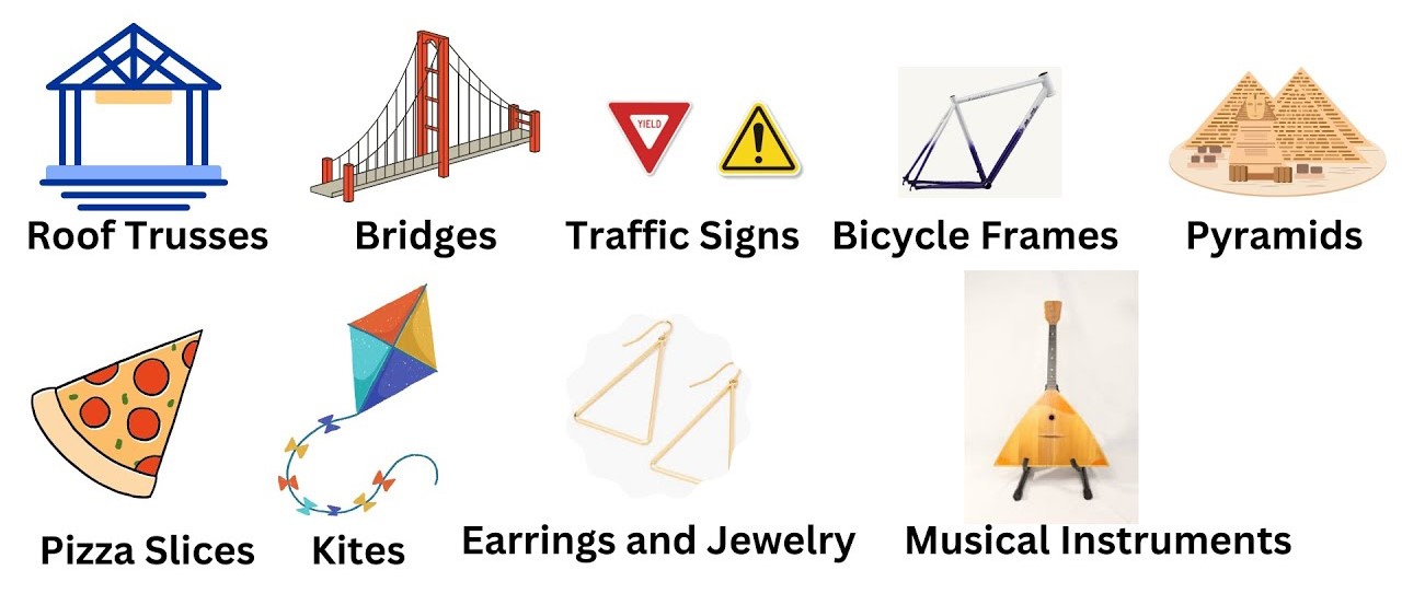 Triangles appear in many real-life objects because they are strong and stable. Examples include :