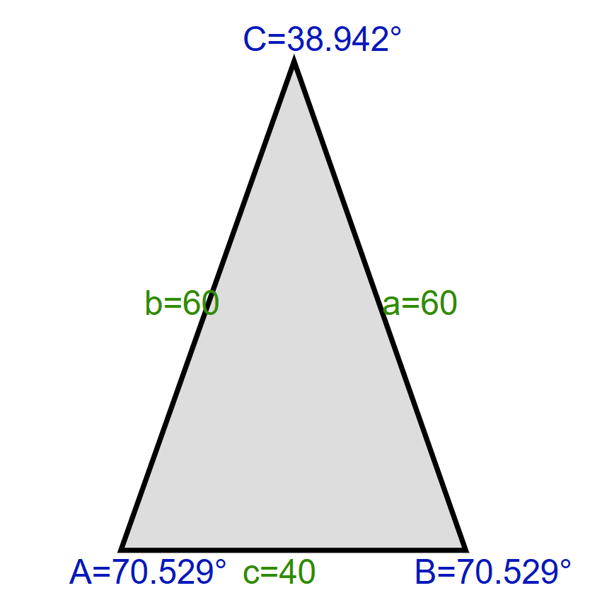 Angles: 70.5°, 70.5°, 39° ( Rounded )